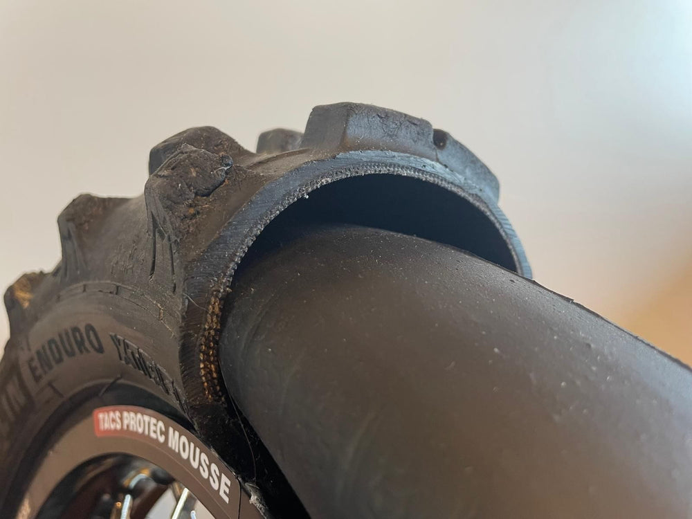 A perfect combination for hard enduro: tubliss + mousse. You get better traction because of the Tubliss system and low pressure but lower chance of punctures because of the half mousse.
